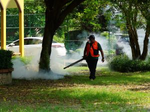 許志宏表示,本次施工所使用的藥劑,以合成除蟲菊精為主,是一種低毒性藥劑,對人畜的危害相對來的小。噴灑後蟑螂等爬蟲類不會立即死亡,四處亂竄屬於正常現象,必須等待20~30分鐘後,才會中毒死亡,請鄉親民眾們不用過度擔心。另外也請大家配合將屋外水溝上的雜物移開,方便施工人員噴灑藥劑。